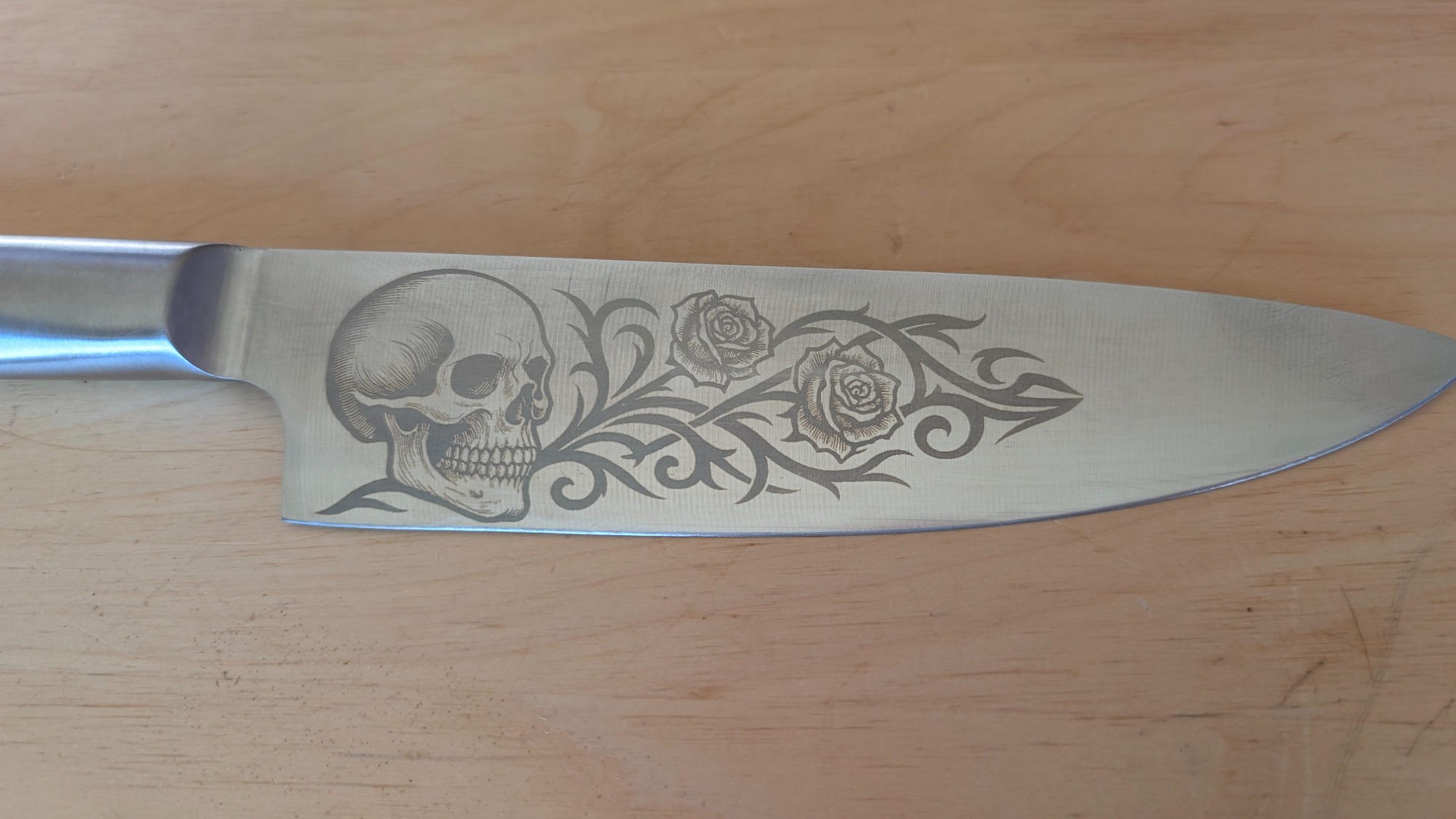 Mit dem UV-Laser lassen sich Küchenmesser zu individuellen Einzelstücken verwandeln. Egal ob mit Mustern, Logos oder Schriftzügen.