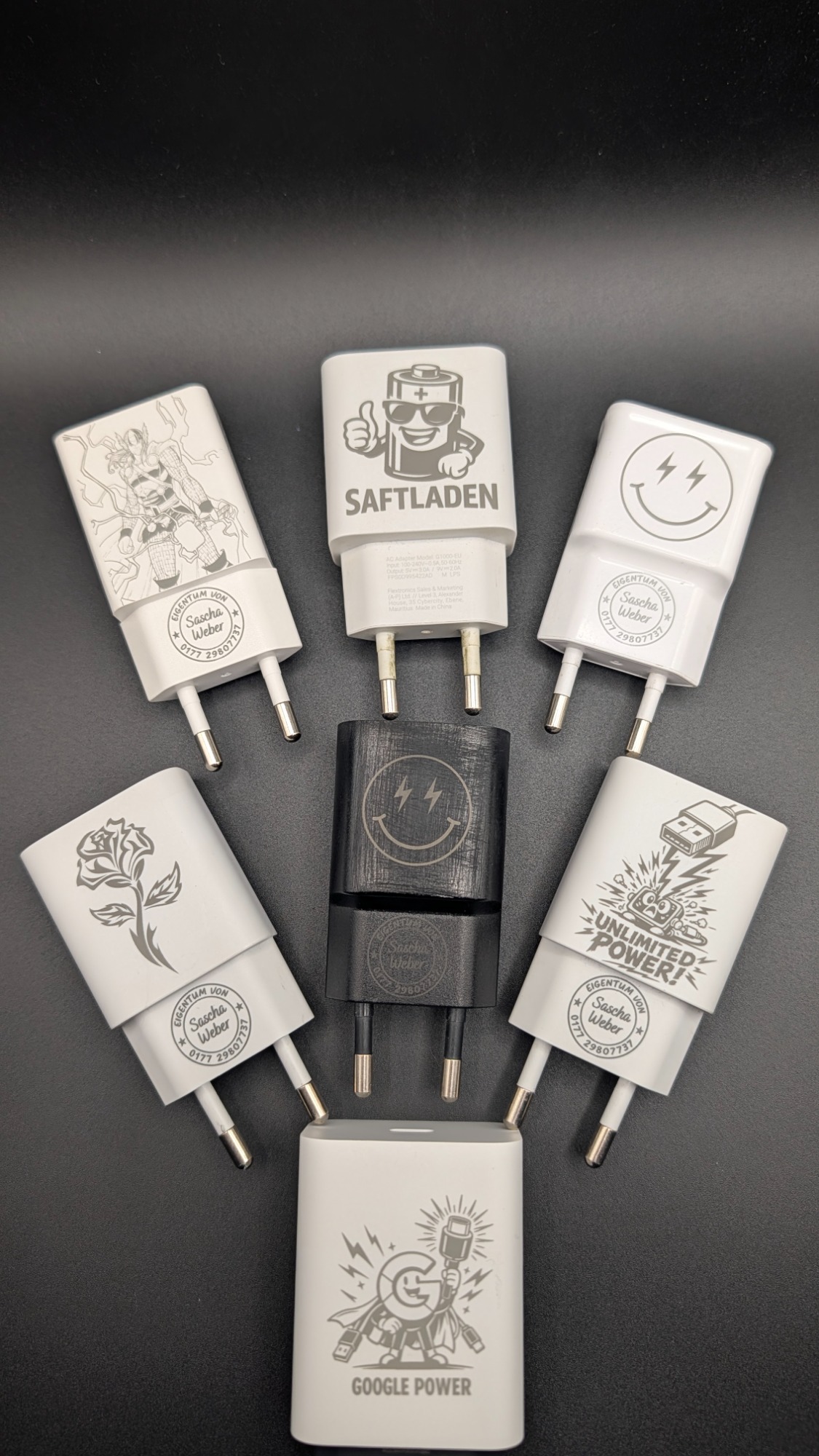 Langweilige Autoschlüssel kann man mit einem UV-Laser perfekt in Einzelstücke verwandeln. Weißer Kunststoff wird hierbei dunkel.