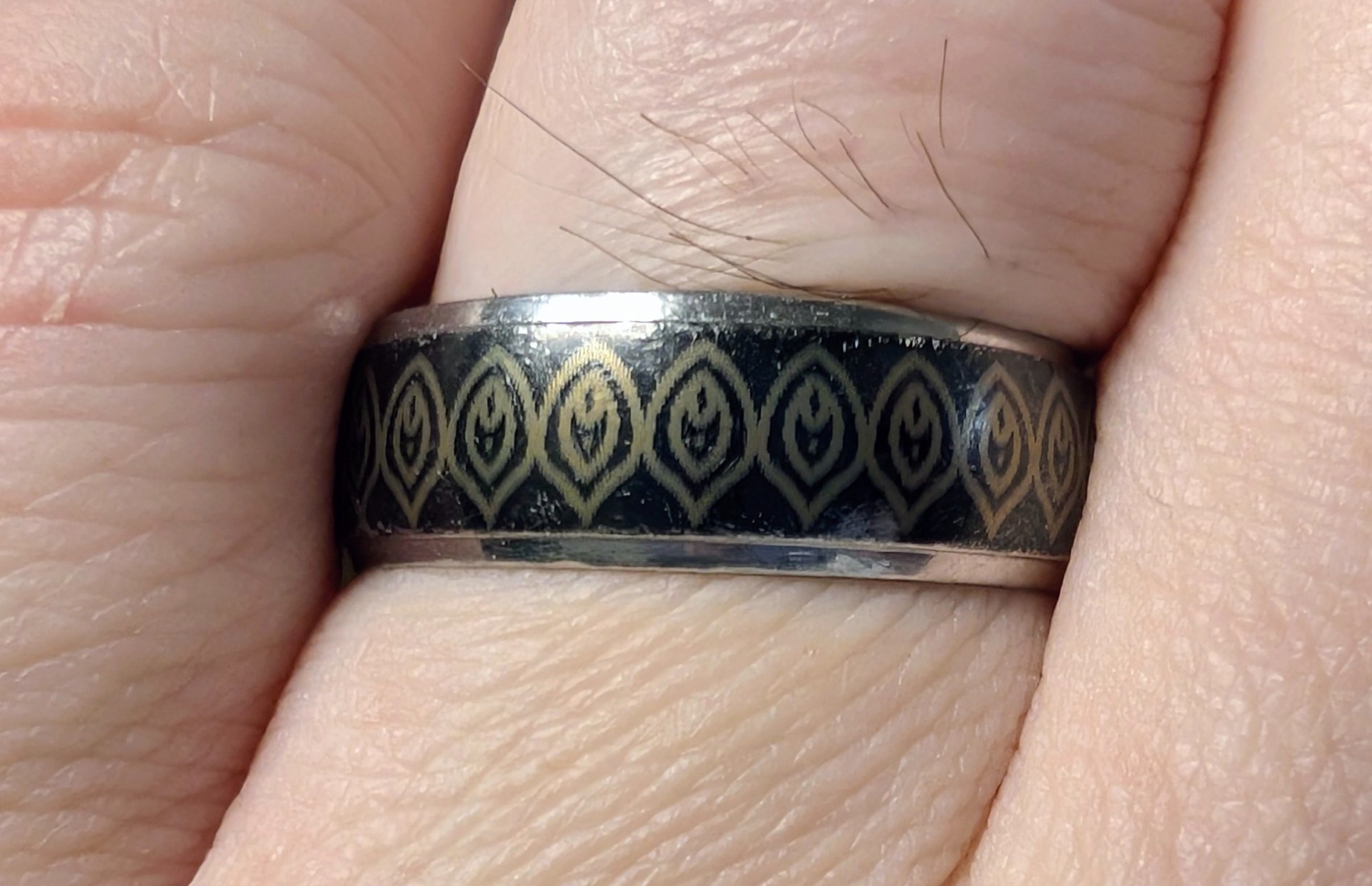 Mit einer speziellen Halterung lassen sich Ringe umlaufend gravieren. In diesem Fall mit einem Ornament.