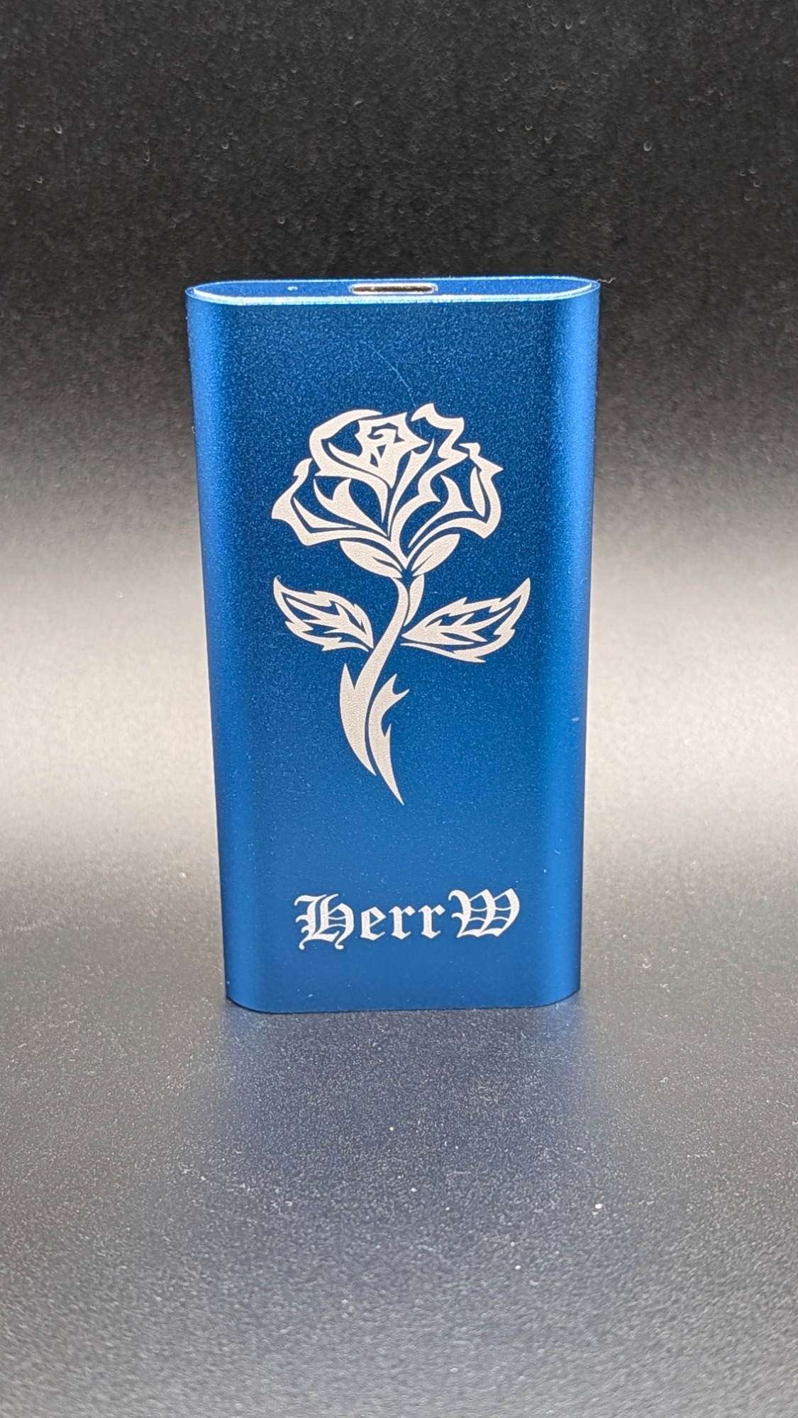 Dieser Schriftzug wurde mit dem Blaulichtlaser aufgebracht. Dazu musste allerdings eine Vorbehandlung erfolgen.
